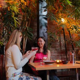 Modern Asian dining and cocktails in an atmospheric courtyard setting.